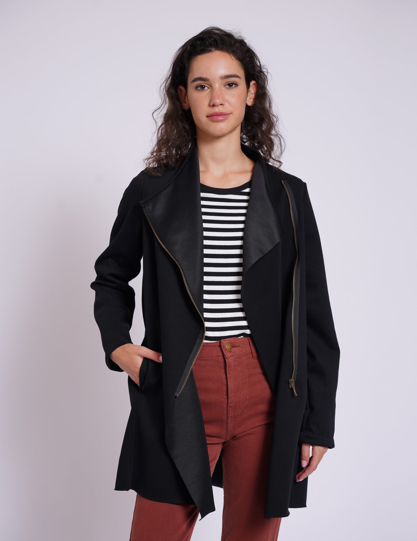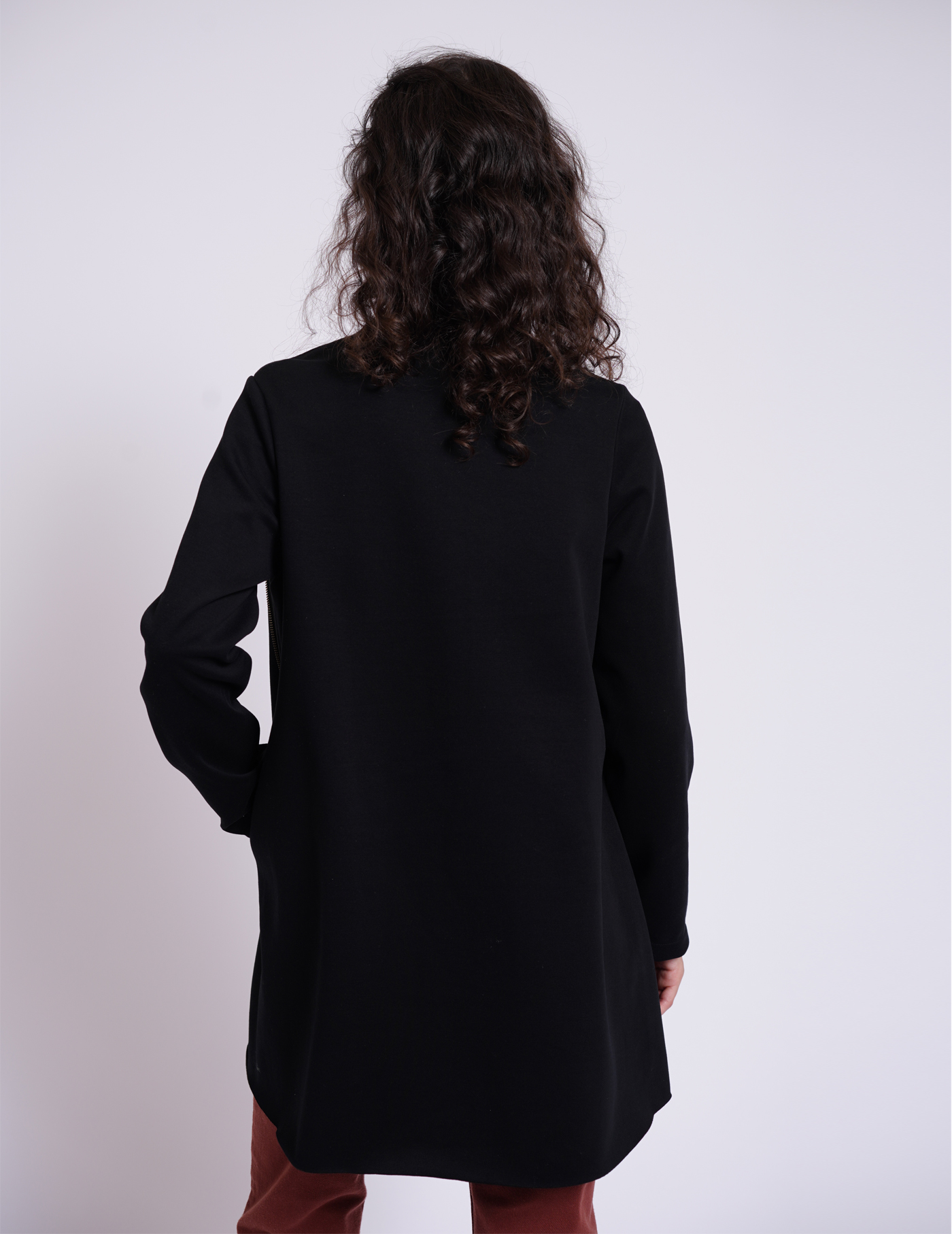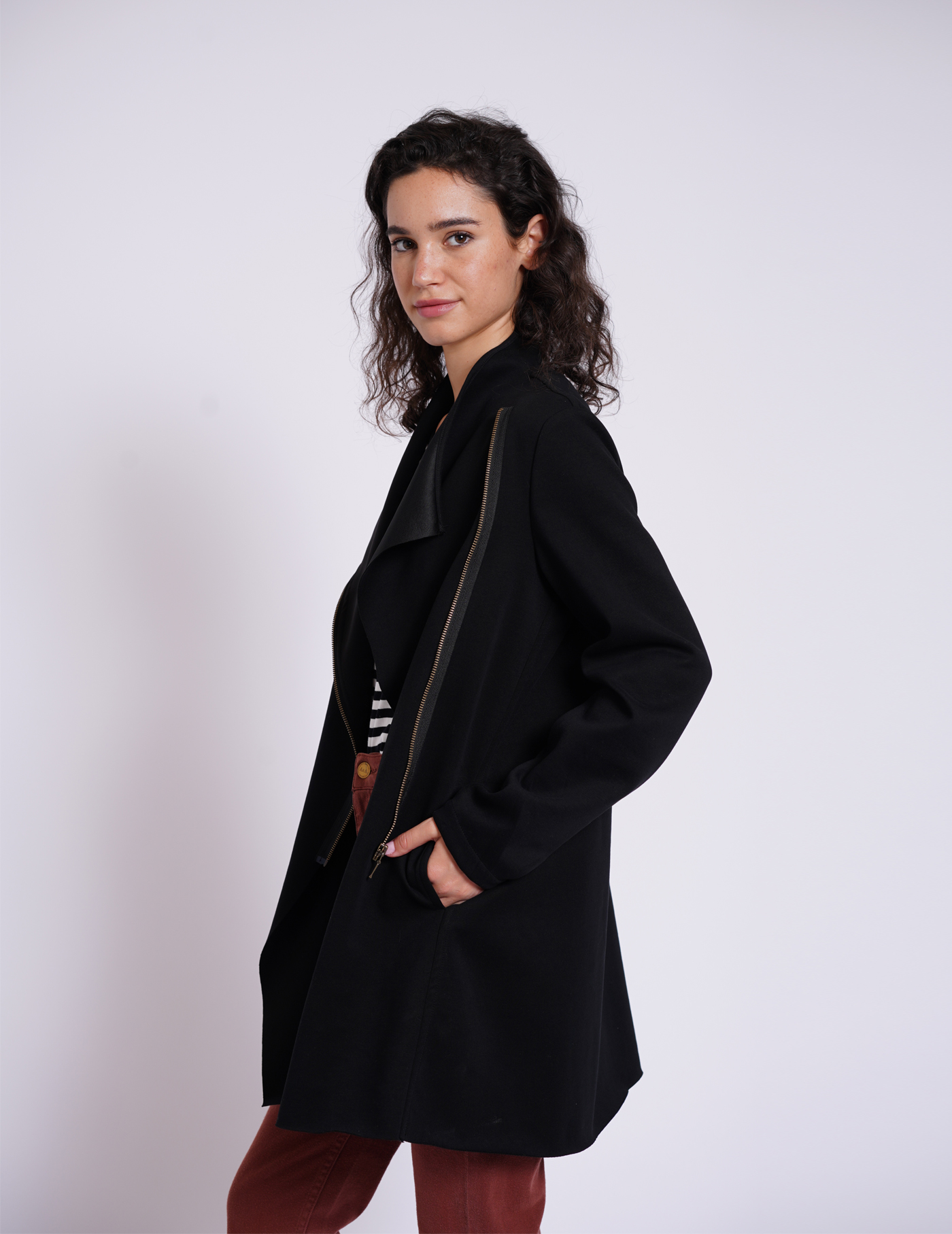 גזרה שמגיעה מעבר לירכיים ואורזת אותך לעונת המעבר והחורף בלוק מתוחכם.