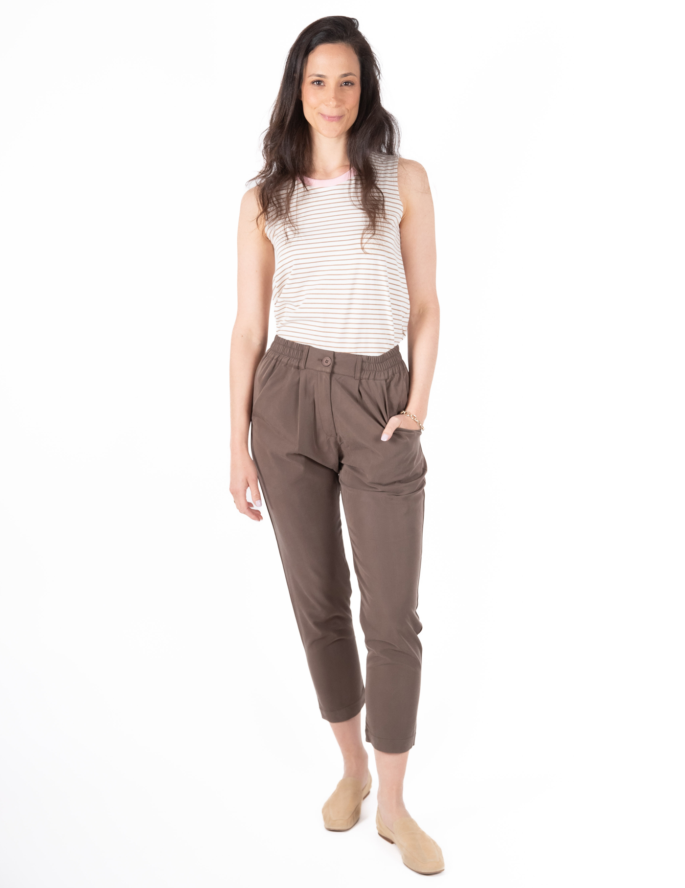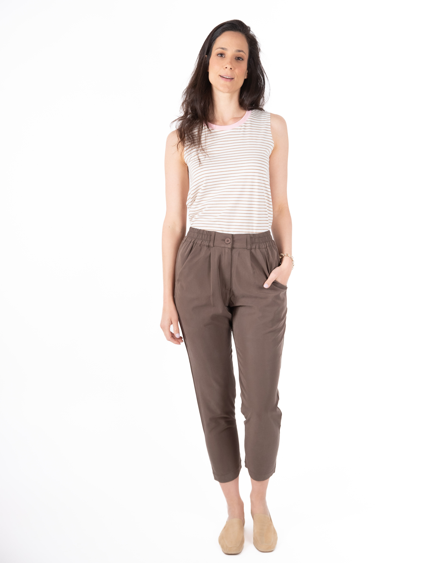 קפלים בחלק הקדמי למראה אלגנטי וכיסים בצדדים.ֿ
