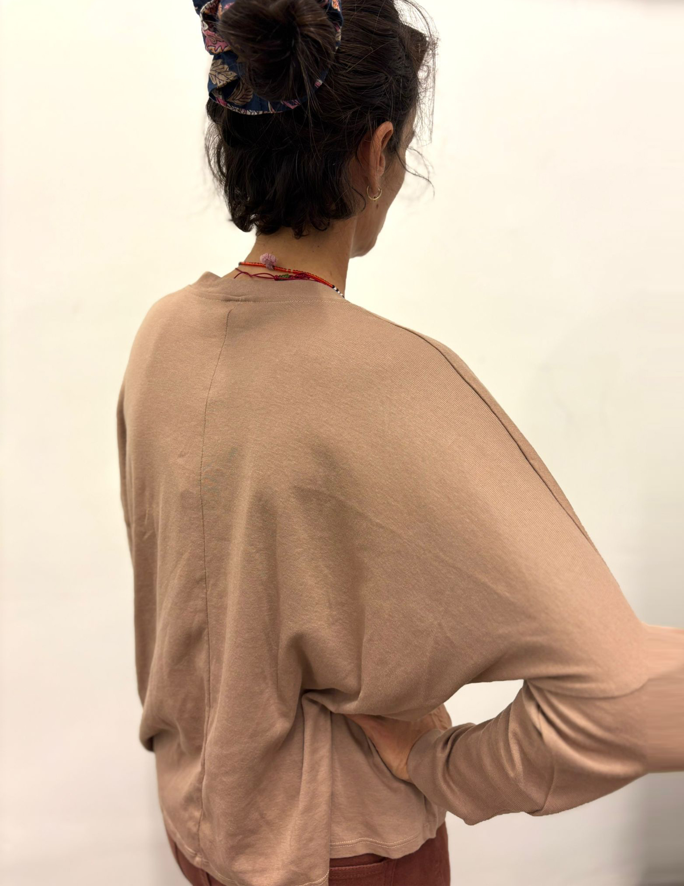 גזרה משוחררת בגוף וצרה בזרועות ליצירת קונטרסט מחמיא עם טוויסט עדין.