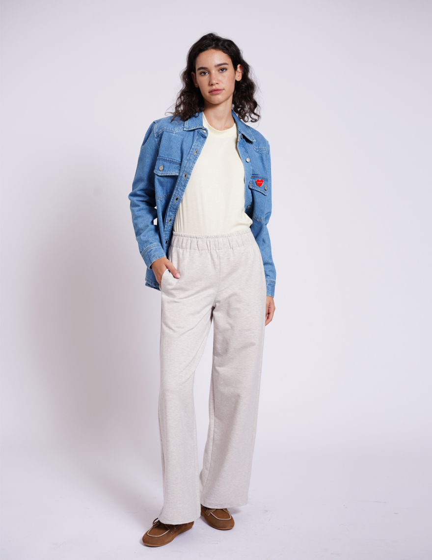 מותן גבוהה בגובה פופיק עם גומי להתאמה אישית, גזרה מתרחבת מעט למראה לבוש אפילו שזה טרנינג וכיסי צד.