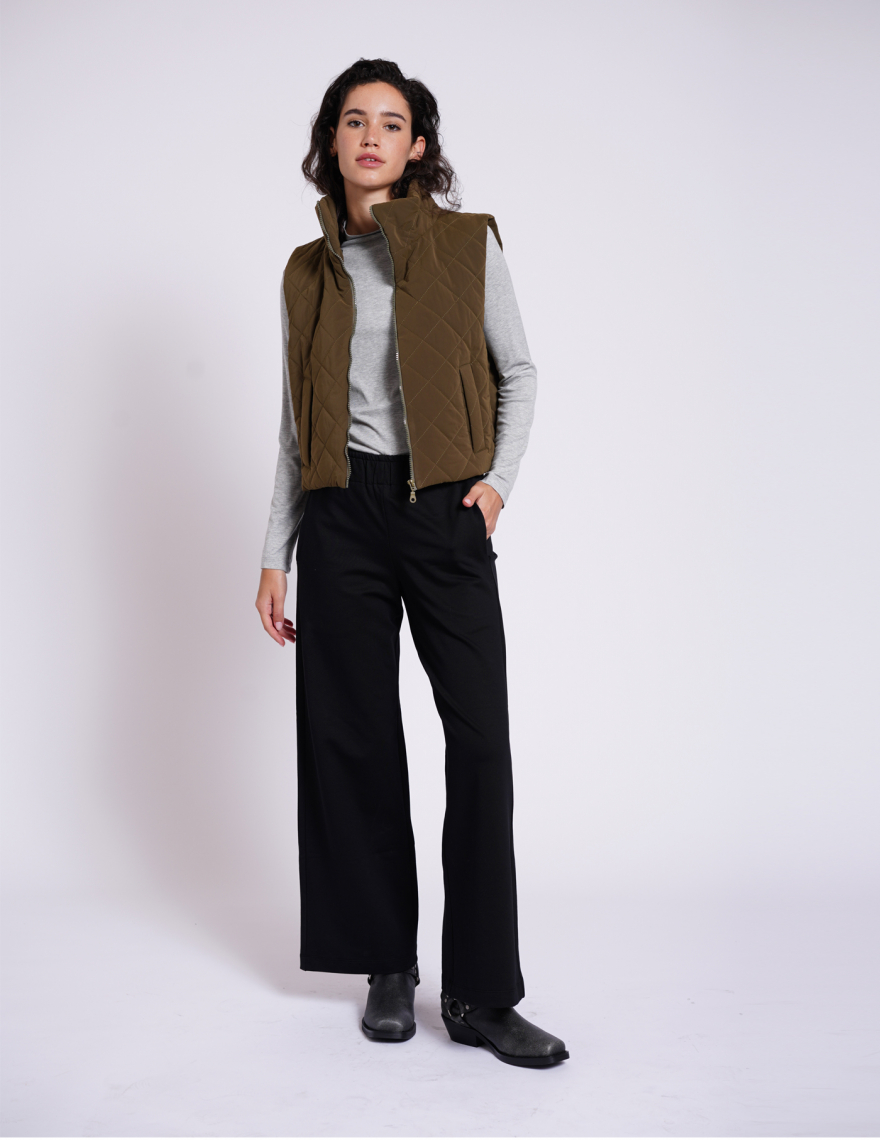 מותן גבוהה בגובה פופיק עם גומי להתאמה אישית, גזרה מתרחבת מעט למראה לבוש אפילו שזה טרנינג וכיסי צד.