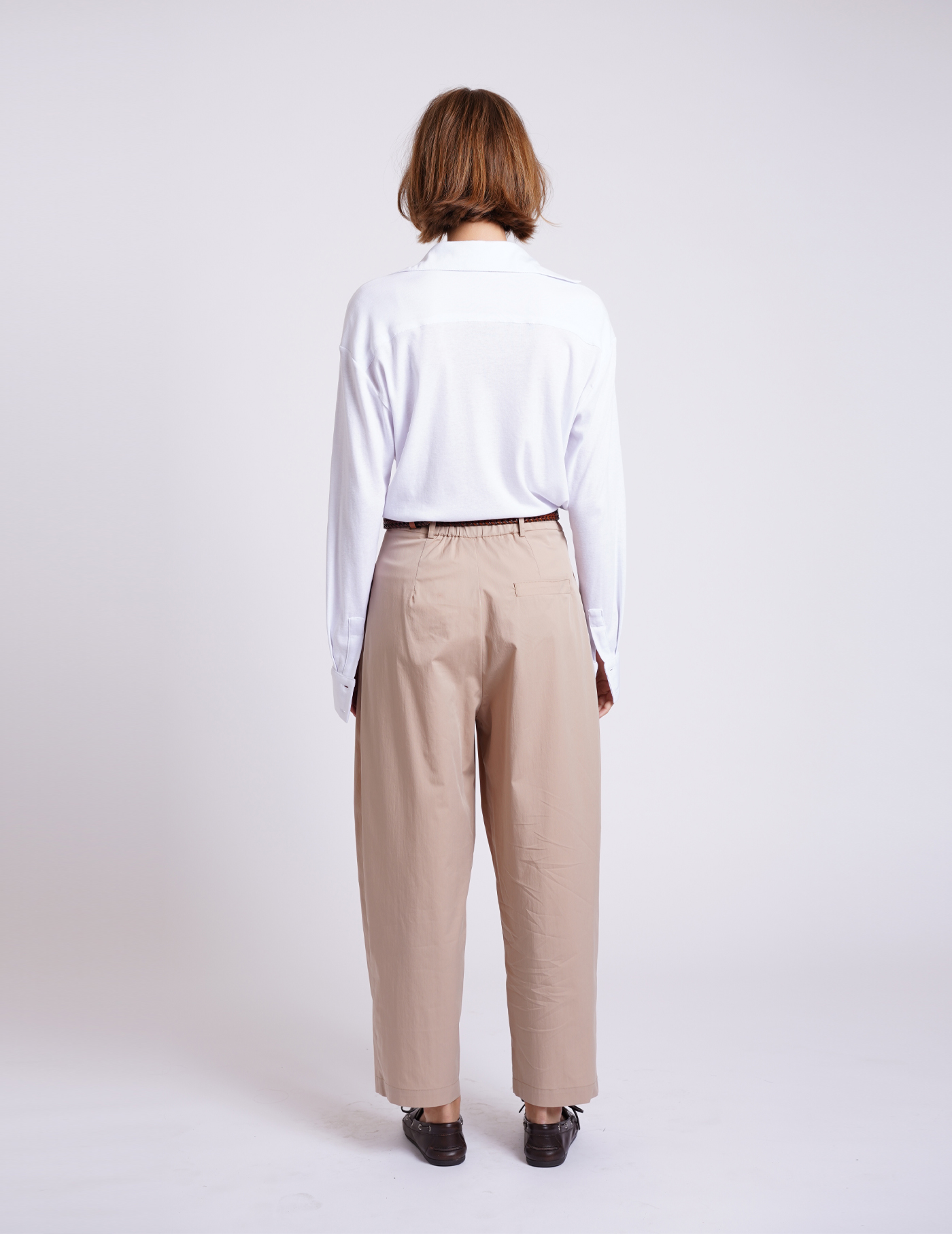 מכנסיים מחוייטים בגזרת בלון עם פנסים מקדימה, מחוייט בגזרה מחמיאה וצמודה במותן. מתרחבת בהדרגה לגזרת בלון עם פנסים וכיסים לנוחות מירבית.