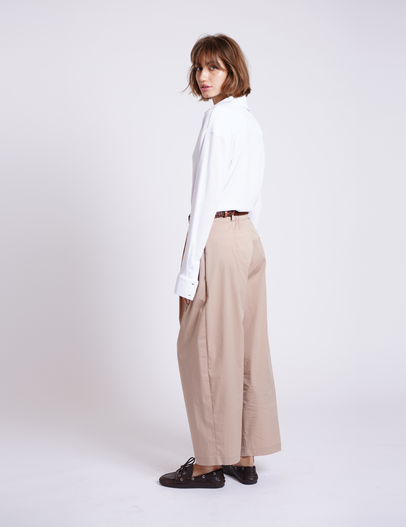 •גזרה משוחררת, קפלים קדמיים וצורת צללית בלון